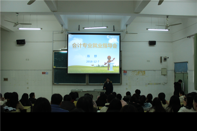 陈老师首先详细介绍了会计专业职场的现状、工作环境、工资待遇等方面,使学生对当前的就业形势有了一个清醒的认识。接下来陈老师以幽默风趣的语言,结合具体案例,为同学们讲述了一个小出纳如何化茧成蝶,成长到财务总监的故事,陈老师深入浅出的讲解让同学们在欢乐之余高效地学到了成功就业的宝贵经验。最后,陈老师结合自身情况跟大家交流了自己的成功心得。讲座结束后,陈老师与同学们就目前就业遇到的困惑和问题进行了交流。