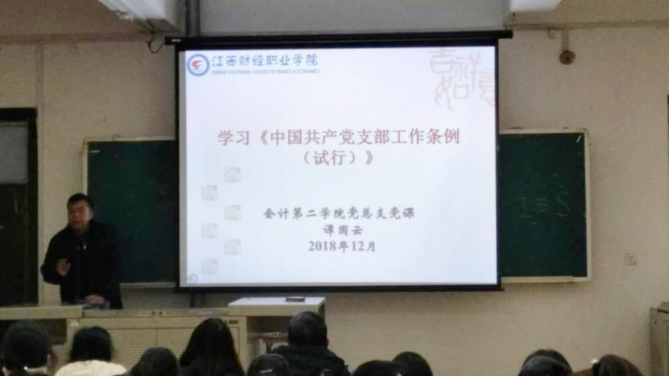2018年12月11日晚,会计第二学院党总支在综阶一室召开党员大会,集中组织学习《中国共产党支部工作条例(试行)》。党课由会计第二学院党总支书记谭国云同志主讲,会计第二学院师生党员、入党积极分子近100人参与学习。