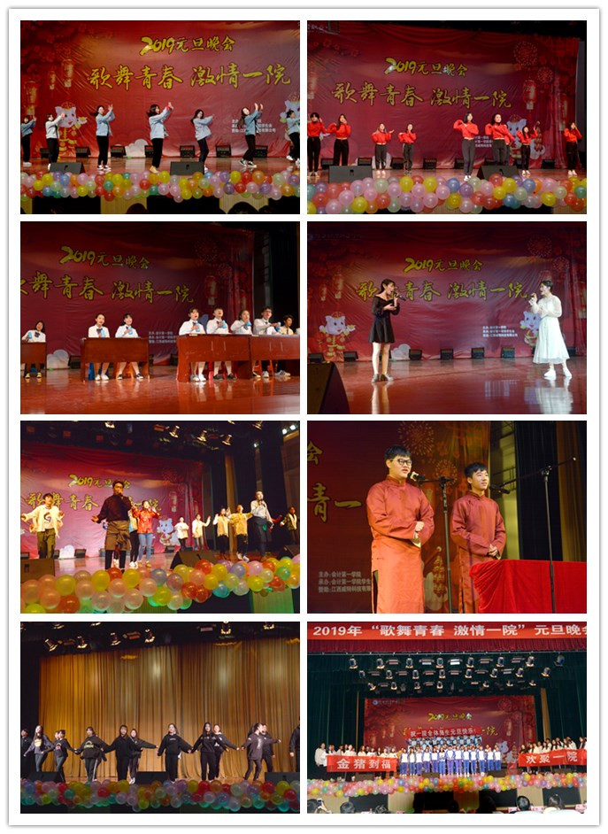 2018年12月24日19时,由会计第一学院精心筹备的以“歌舞青春,激情一院”为主题的2019年元旦文艺晚会在beat365英才交流中心隆重举行。会计第一学院党政领导及本系师生代表等1000余人共同观看了本场晚会。晚会由本院徐贵成、张煦橦、张远鑫、马媛媛、董洛洛、张柄熔6位同学主持。晚会现场座无虚席,处处洋溢着喜庆祥和的节日气氛。