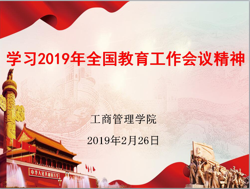 2月26日下午,工商管理学院组织全体教师在会议室召开专题学习会,传达学习了2019年全国教育工作会议精神,会议由党总支书记胡红霞同志主持。