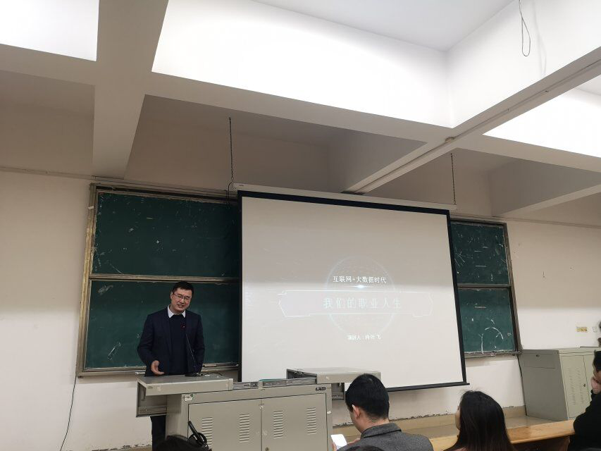 开幕式结束后,本季“赢在商战”活动旋即拉开大幕,江西融云网络科技有限公司总经理肖叶飞应邀给大家带来了主题为《互联网+大数据时代的职业人生》的讲座。肖叶飞简单介绍了自己的创业经历及公司主要业务,分享了在创业过程中对于团队管理、业务推广等方面问题的所思所得,并从想法+选择、积累+沉淀、机遇+资金+能力三个方面谈及了对于创业的所感所悟。最后结合智能时代科技发展趋势,肖总鼓励大家从现在开始做好能力定位、方向选择及职业生涯规划。本次讲座拉近了学生与现代科技的距离,加深了学生对创新创业的认识,激发强化了学生从专业学习与实践中积累创业资本的意识,有助于进一步推动创新创业教育。