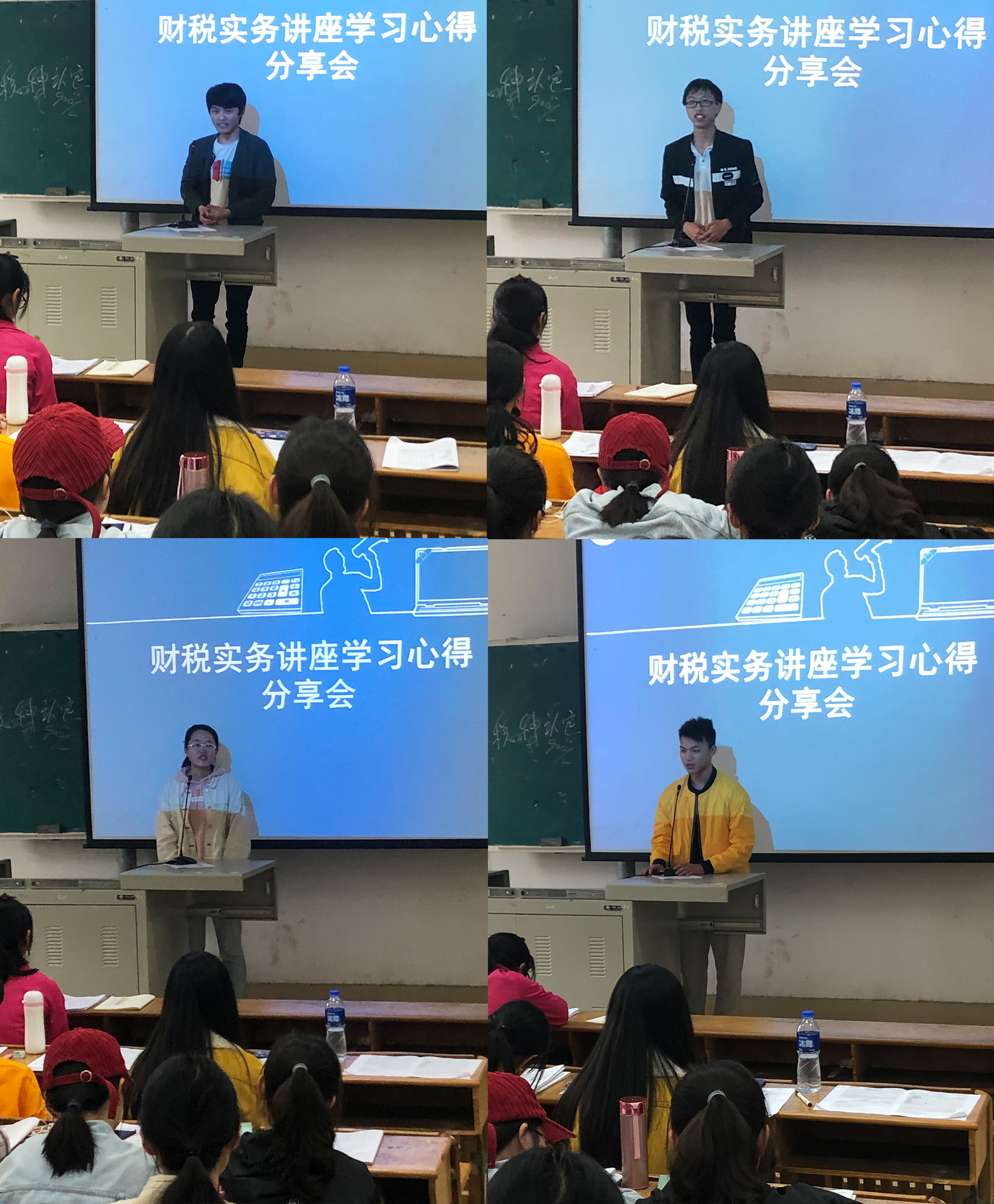 下午,陈野老师安排学生填制小规模纳税人增值税申报表和介绍新办公司登记流程,当场送了助理会计师考试资料及报税密钥卡给同学们上机练习。最后环节是进行现场交流互动,学生积极上台分享自己对于本场讲座的收获,现场气氛活跃,踊跃发言。会后,纷纷通过发朋友圈等方式表示这次讲座受益匪浅。