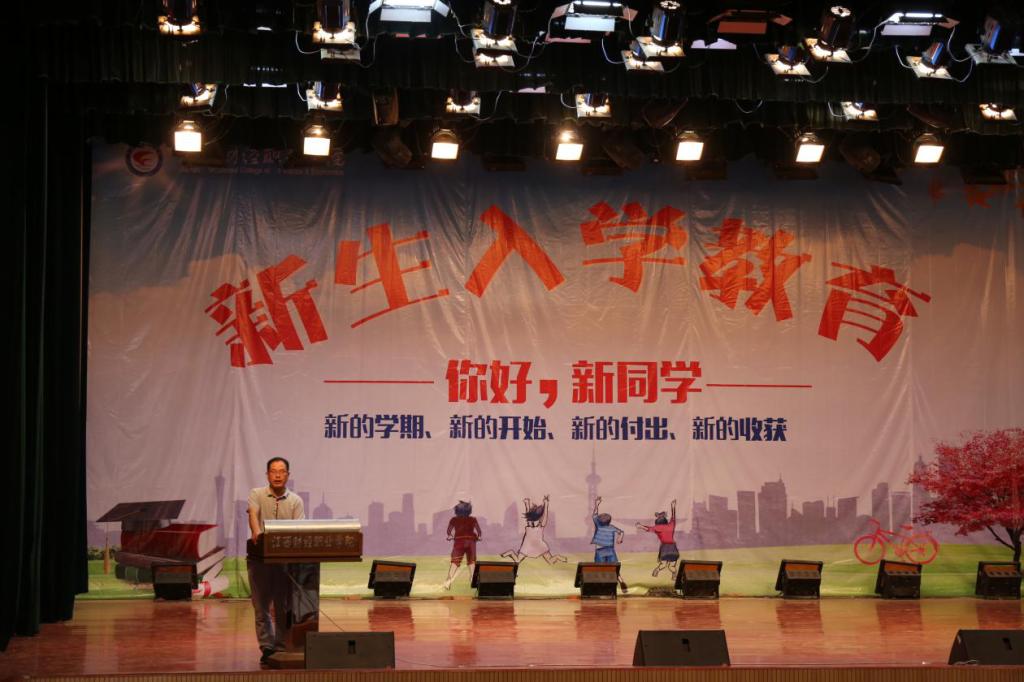 工商管理学院院长冯弋江发表了热情的欢迎辞,介绍了学校及学院的基本情况,并意味深长地对全体新生提出了三个希望:一是通过国内外复杂局势分析、央视《开学第一课》解读,勉励同学们增强爱国主义情怀,树立奋发报国之志;二是希望同学们把学习当成一种伴随终身的习惯,惜时如金、孜孜不倦、心无旁骛、静谧自怡地追求学习,打牢专业根基,厚植文化底蕴;三是希望同学们心存梦想,脚踏实地,努力奋斗,不断挑战自我、超越自我,拒作“巨婴”,拒作“佛系青年”。