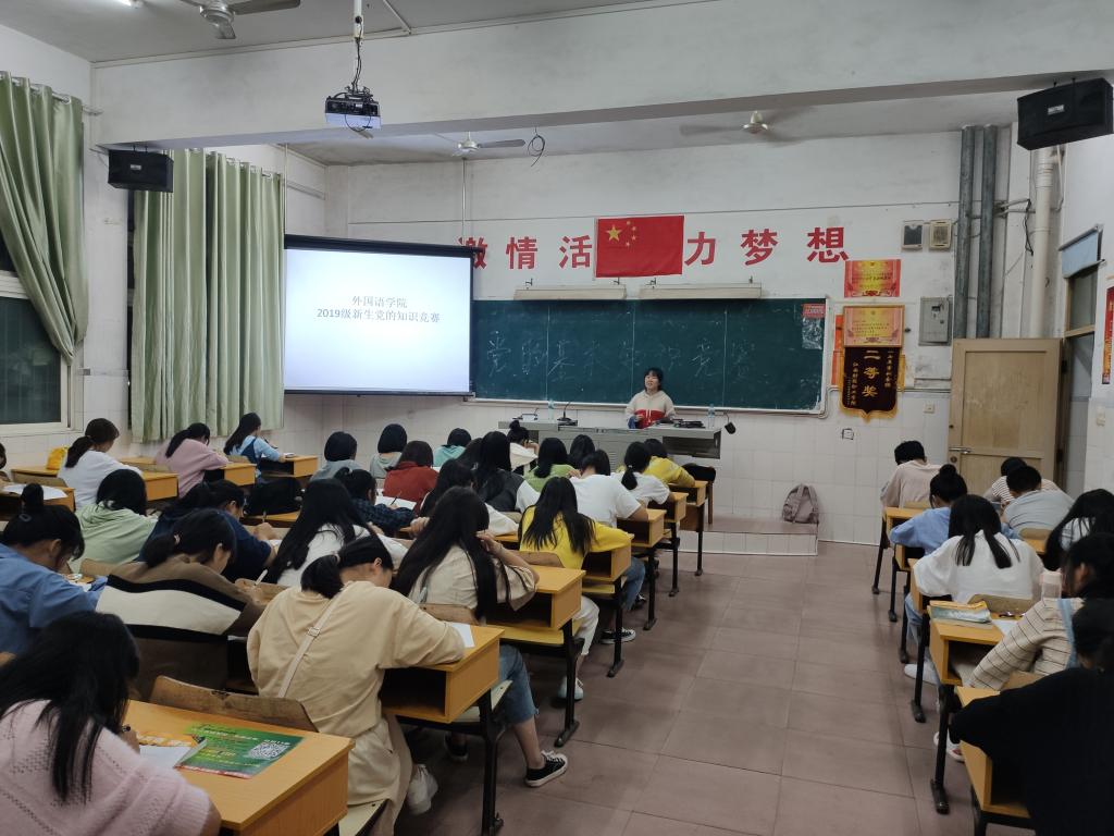 为深入学习贯彻习近平新时代中国特色社会主义思想和党的十九大精神,扎实推进“两学一做”学习教育常态化制度化,引导广大青年学生坚定共产主义远大理想和中国特色社会主义共同理想,听党话,跟党走,不忘初心,牢记使命,外国语学院于2019年10月10日在教学楼101、103、104、317教室举办了“党的基本知识”竞赛,2019级全体新生参加了此次活动。