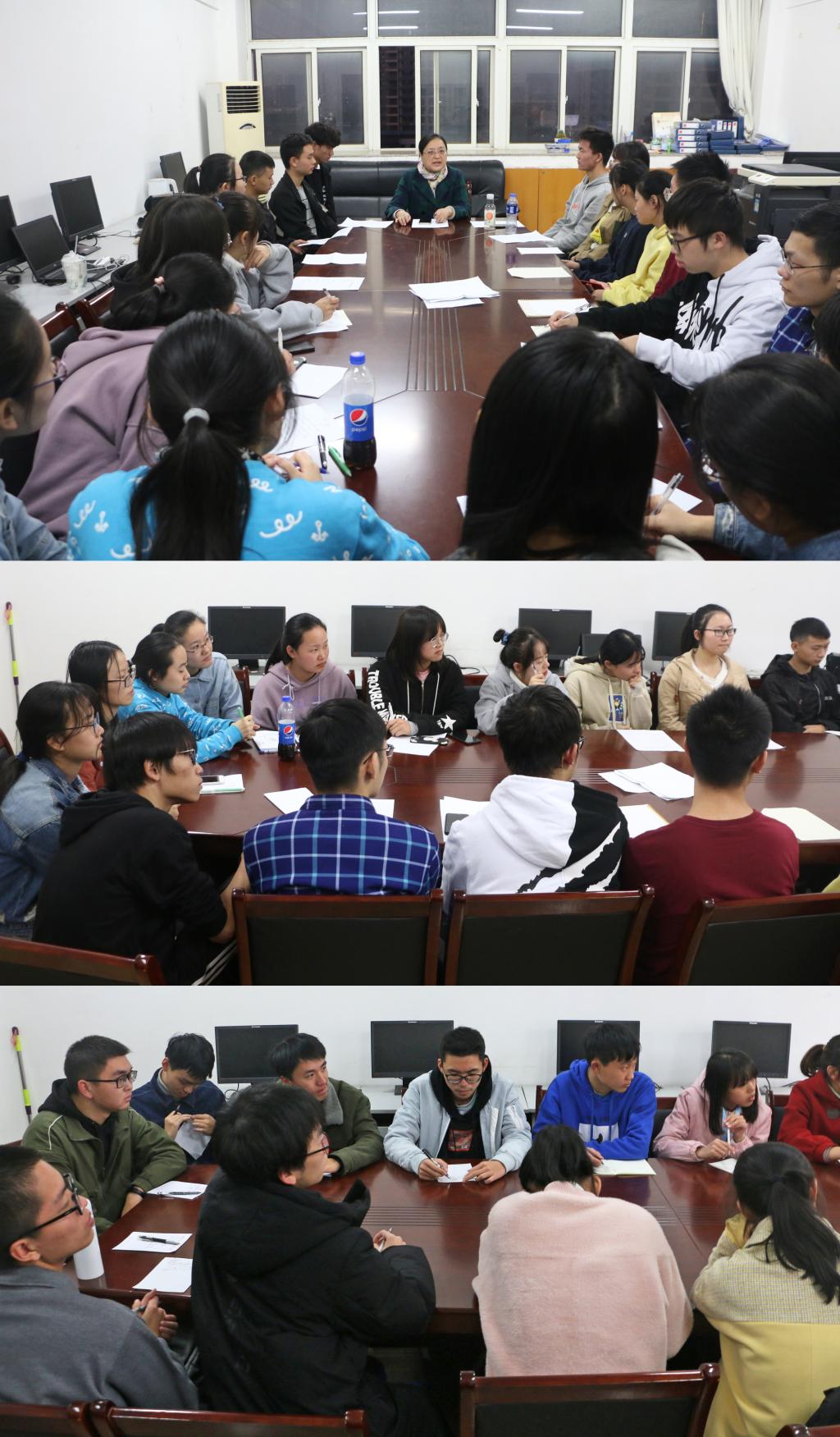 为更好了解本科生学习及思想动态,着力提升本科教学管理与服务水平,本科部于9月-11月期间完成了2019-2020学年第一学期期中教学检查,包括对教师课堂教学用随堂听课的方式进行了抽查,与班级干部代表面对面座谈,就教学质量、教学模式及教学管理等问题采用网络匿名的形式针对各年级本科学生开展问卷调查和评教活动等。其中2019年11月20——22日下午16:20,本科部在办公楼915分别召开了17级——19级本科生期中教学座谈会,本科部老师,17级、18级、19级60位学生代表共同参加了此次活动。