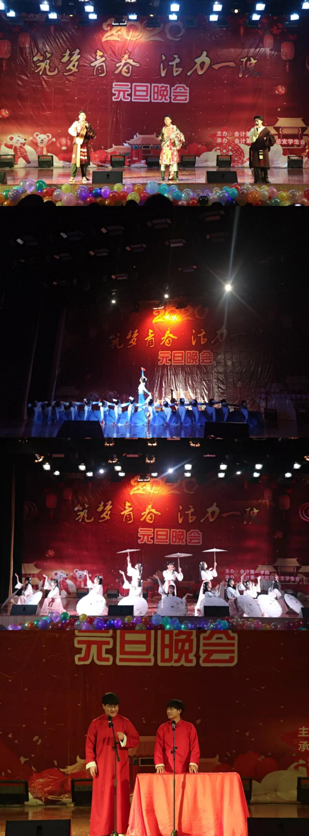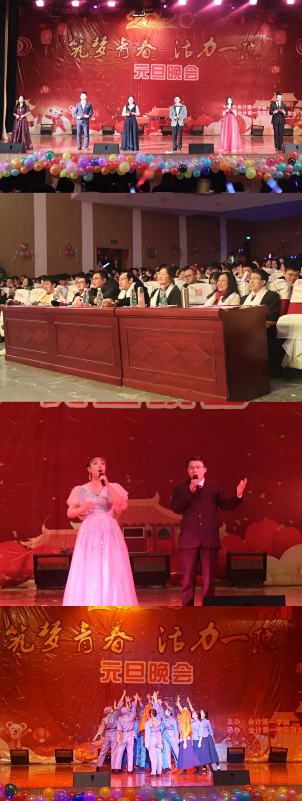 2019年12月17日19时,由会计第一学院精心筹备的以“筑梦青春,激情一院”为主题的2020年师生元旦文艺晚会在本校英才交流中心隆重举行。会计第一学院党政领导及本系师生代表共900余人观看了本场晚会。晚会由本院刘鸿睿、陈曦、张远鑫、马媛媛、刘佳宁、陈妍等六位同学主持。晚会现场座无虚席,充满了浓厚的欢乐与喜庆氛围。