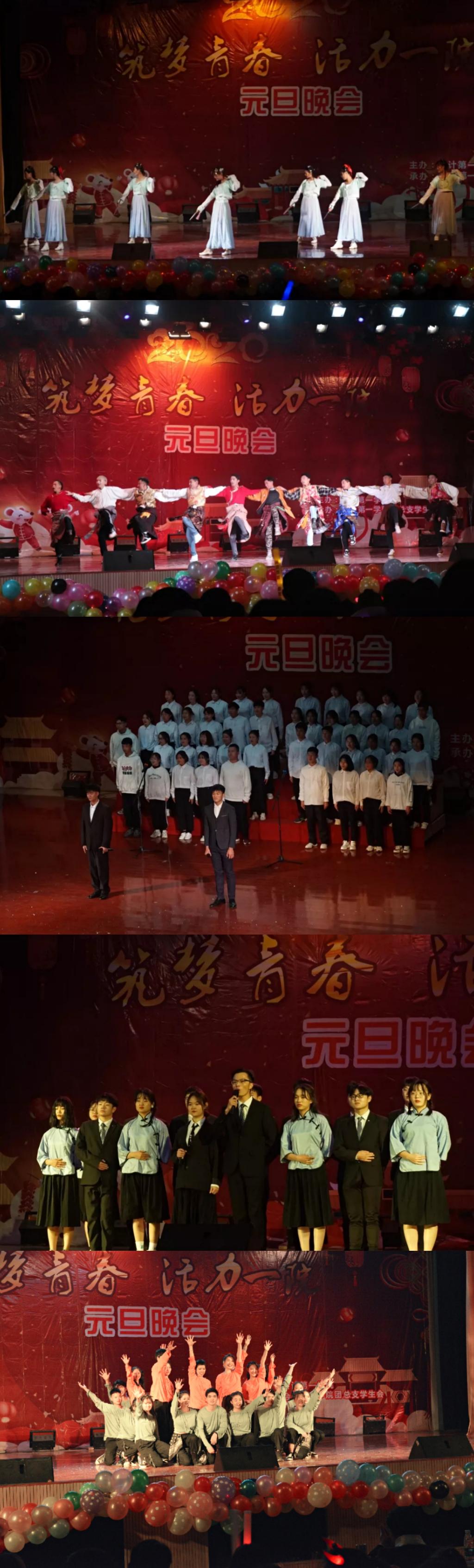 晚会在优美高雅的《爱的华尔兹》开场;作为创新,今年的主持人一改往年的风格,由台下走上台上,不仅为我们带来了主持词,还为我们一展歌喉;本院党总支书记卢洪信教授与吕相宜老师带来的歌曲《共筑中国梦》声情并茂、主题鲜明、气势磅礴;《丽人行韵》《青城山下白素贞》《落花情》用优美的旋律带我们走进了古典美的世界;富有民族特色的《雪域传奇》《郁金香的故乡》为晚会增添了不一样的风采;《筑梦》用不同服装以及音乐带我们看遍了历史变迁;《有哲理的人》用他们幽默诙谐的语言让晚会充满了快乐;《父亲》用情景剧的方式带我们感受父爱的伟大与坚定;《我们都是追梦人》用青春激昂的舞蹈把现场气氛推向高潮《红旗颂》《少年中国说》用歌声与舞蹈让晚会现场充满了红色氛围;晚会在beat365舞蹈队的《黄河》充满激昂的舞蹈中落下帷幕。