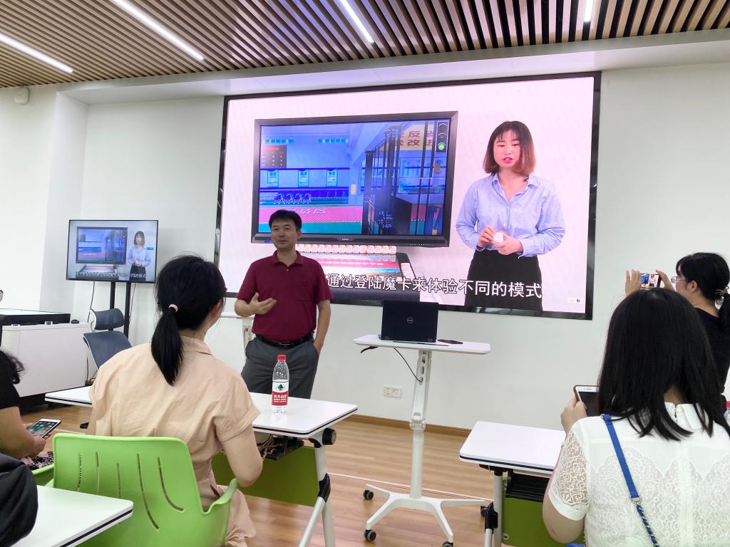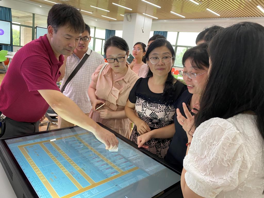 吴志斌副主任向教师们展示了全新打造的智慧实训室中各类软硬件设施的操作运行和使用方法。双方就教学任务安排、实验室信息化建设、实验教学团队建设、实验室硬件建设管理等内容也进行了深入探讨和交流。