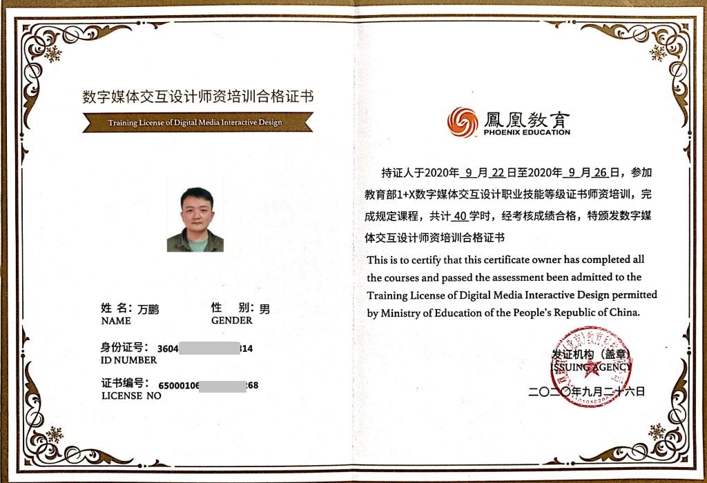 本次培训主要从1+X证书制度的意义与政策解读、考点申请、实训室建设要求、1+X证书制度及职业技能等级标准、数字媒体交互设计职业技能等级证书考核内容及考核样题操作、教材等几个方面展开。两位教师认真学习相关理论知识与实践操作,并顺利通过数字媒体交互设计职业技能证书认证考试。