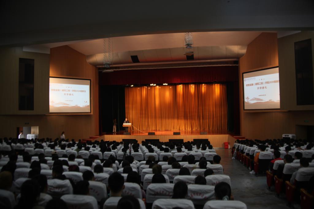 2020年10月12日上午,财税金融(建筑工程)学院在英才交流中心举行2020级新生开学典礼,学院樊纪明院长、胡红霞书记、吕亨龙副院长、王怡然副书记、校学工处刘磊副处长、学院其他教师、新生辅导员和2020级新生共计650余人参加典礼,典礼由学院党政办公室张天明主任主持。