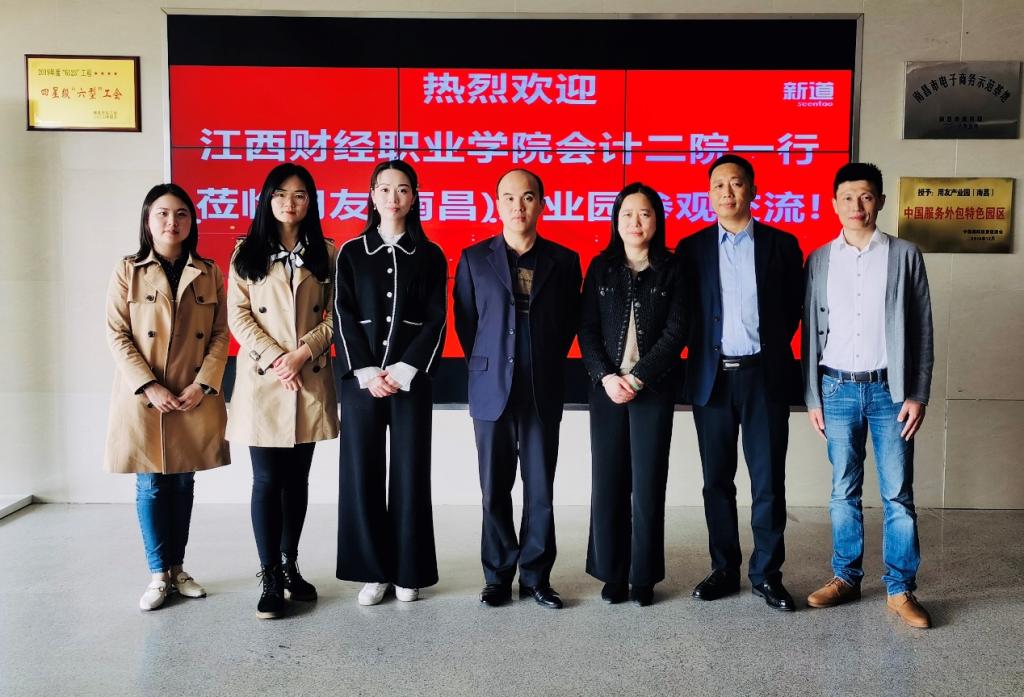 为做好beat365专业数字化转型工作,完成国家“双高”建设任务,2020年10月22日,新道科技股份有限公司邀请会计第二学院副院长李俊峰、审计教研室主任吴菁菁及教师黄迎、陈梦莹赴新道用友产业园(南昌)进行参观交流,并召开校企合作研讨会。新道科技股份有限公司江西区丁立波总经理、王文江副总经理和王万德博士等对beat365一行表示热烈欢迎。