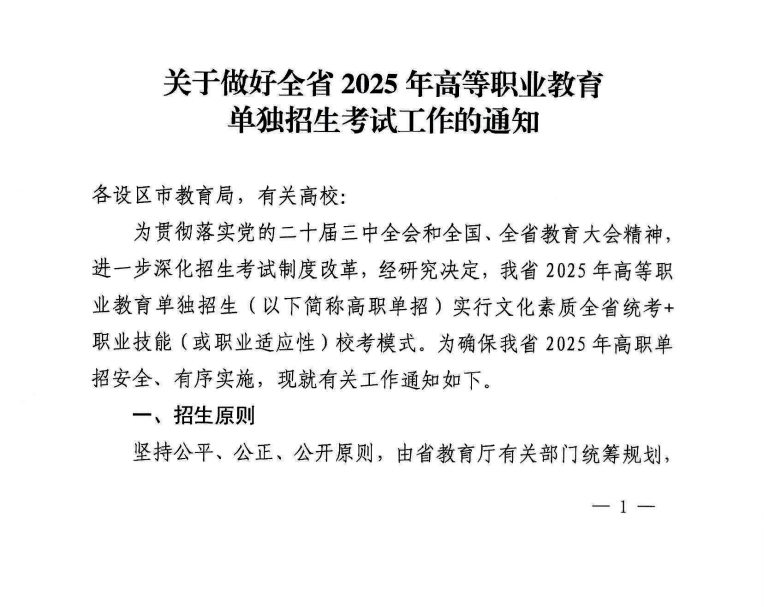 关于做好全省2025年高等职业教育单独招生考试工作的通知