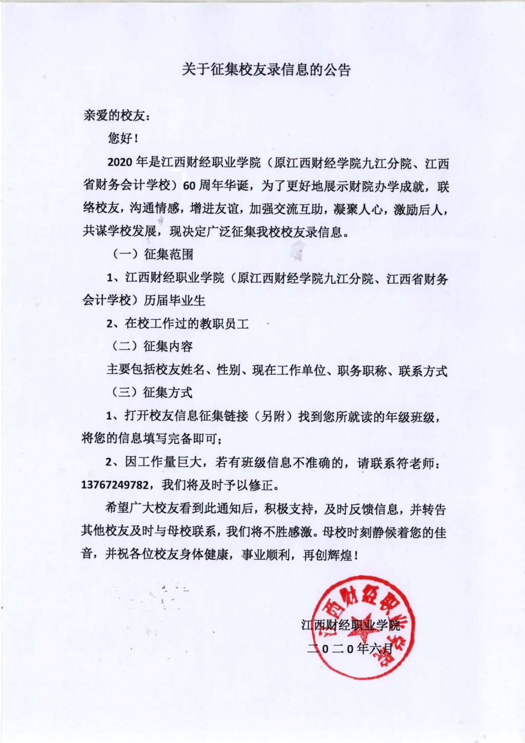 beat365平台唯一官网(原江财九江分院、江西财校)校友录信息征集链接