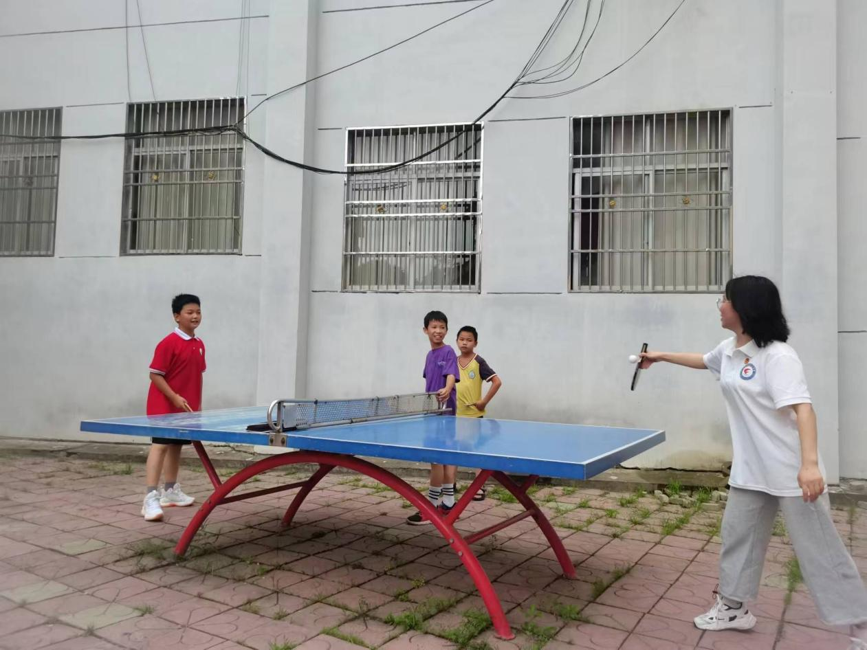 图为队员和学生们进行乒乓球比赛。中国青年网通讯员 龚佳懿 摄