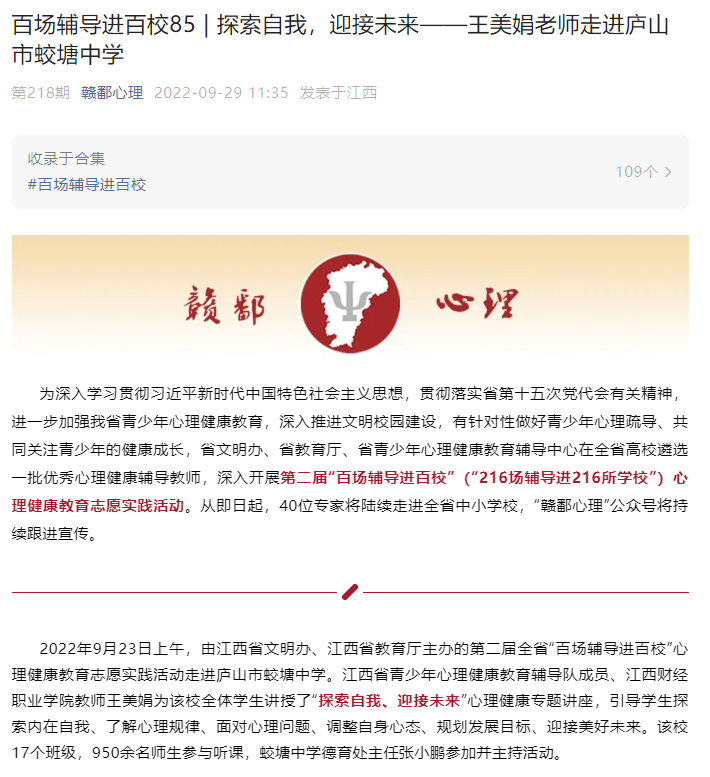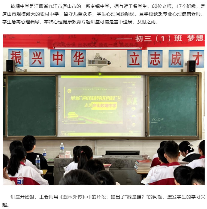 赣鄱心理:百场辅导进百校85 | 探索自我,迎接未来——王美娟老师走进庐山市蛟塘中学
