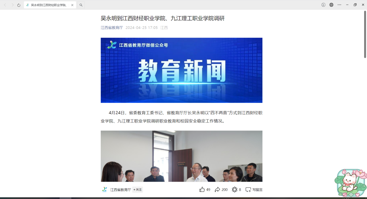 江西省教育厅:吴永明到beat365平台唯一官网、九江理工职业学院调研