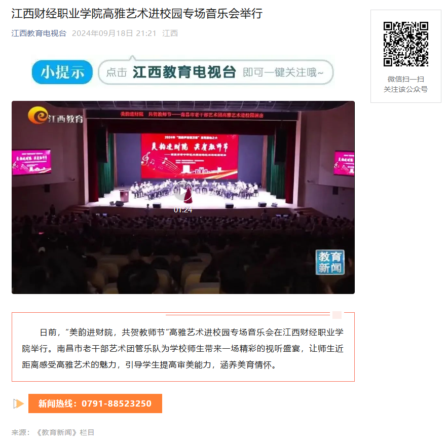 【江西教育电视台报道】beat365平台唯一官网高雅艺术进校园专场音乐会举行