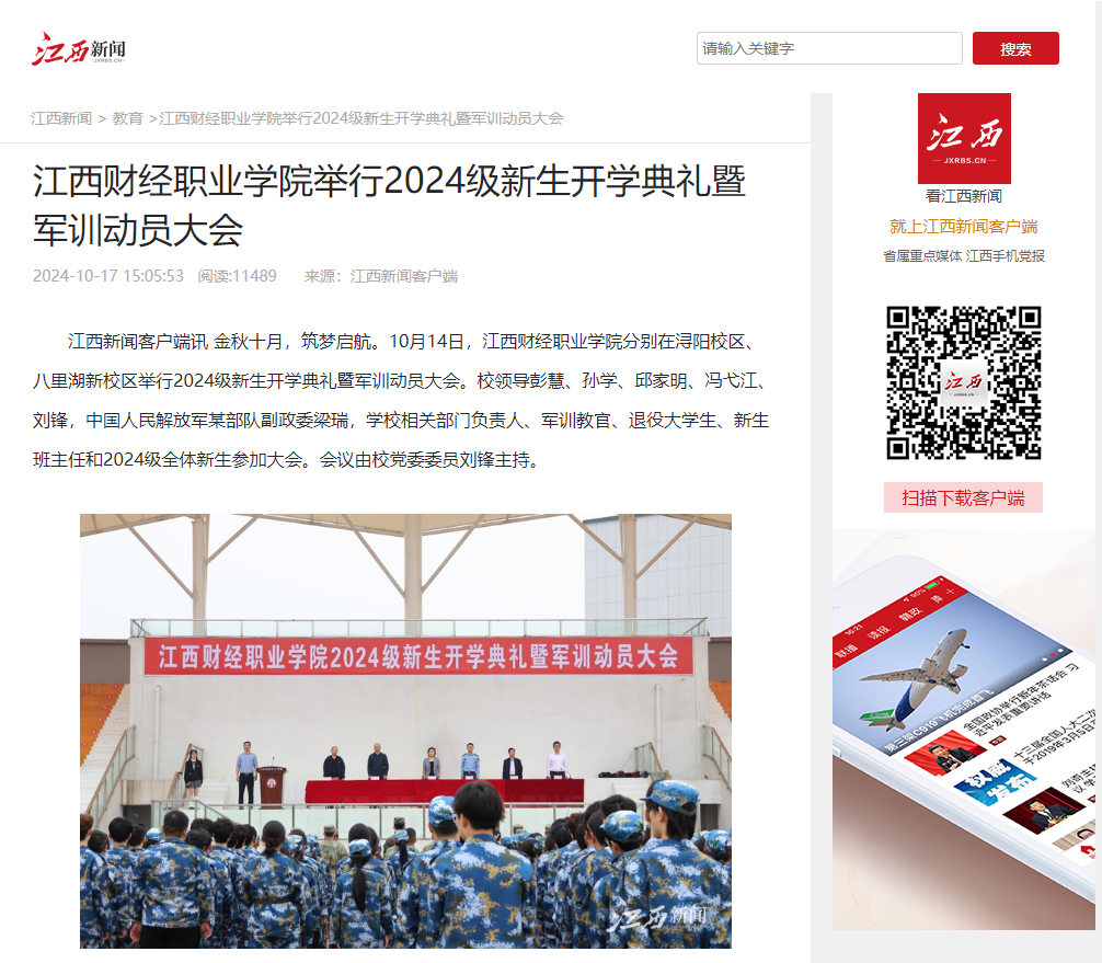 【江西新闻报道】beat365平台唯一官网举行2024级新生开学典礼暨军训动员大会