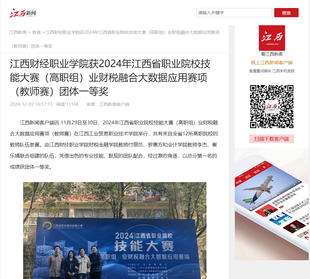 beat365平台唯一官网获2024年江西省职业院校技能大赛(高职组)业财税融合大数据应用赛项(教师赛)团体一等奖