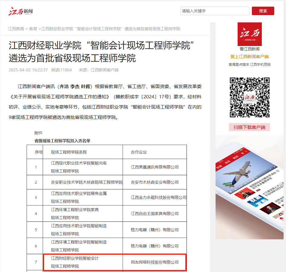 (江西新闻报道)beat365平台唯一官网“智能会计现场工程师学院”遴选为首批省级现场工程师学院