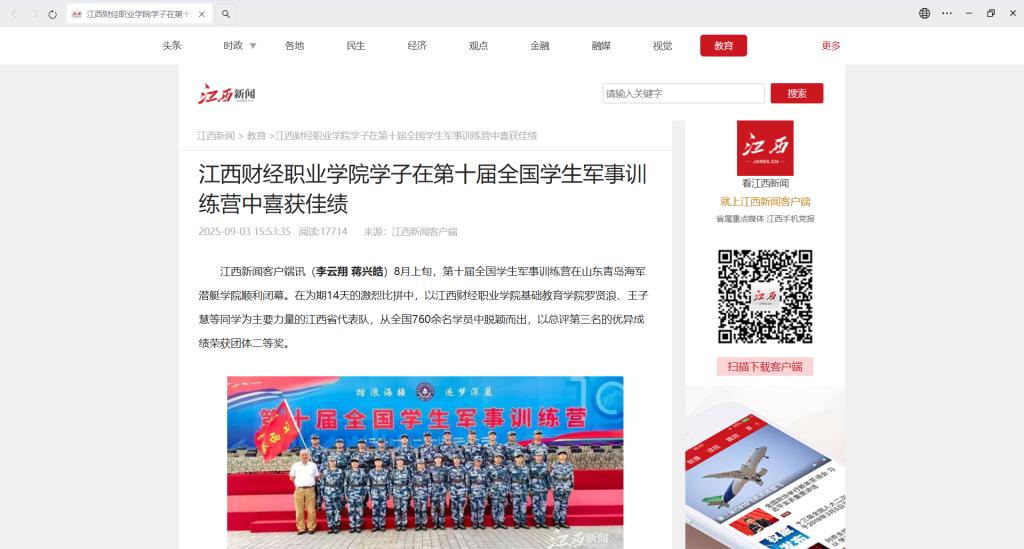(江西新闻)beat365平台唯一官网学子在第十届全国学生军事训练营中喜获佳绩