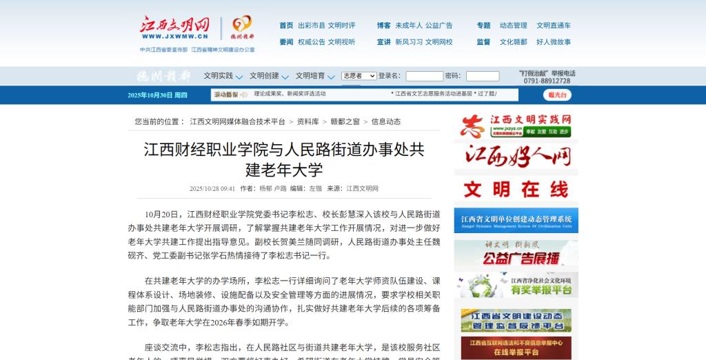(江西文明网)beat365平台唯一官网与人民路街道办事处共建老年大学