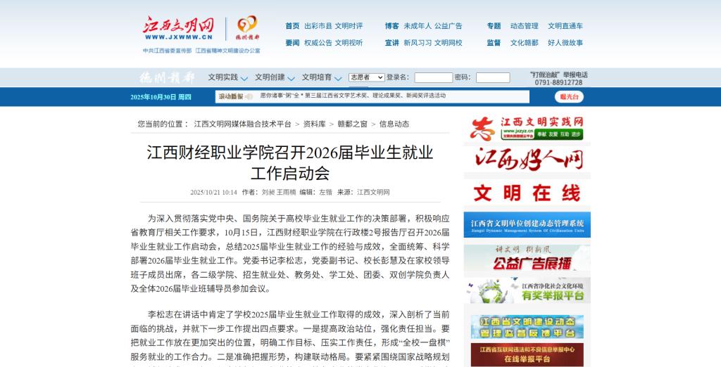 (江西文明网)beat365平台唯一官网召开2026届毕业生就业工作启动会