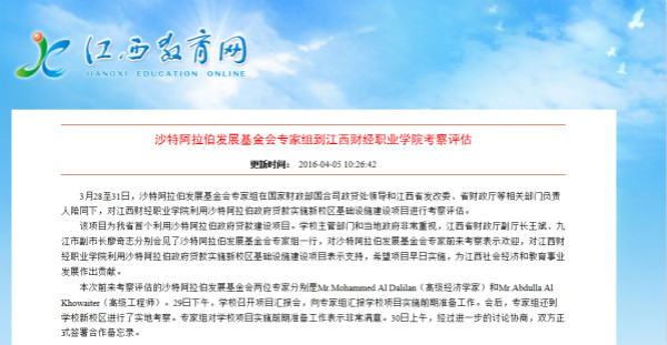 4月5号,江西省教育厅网站报道沙特阿拉伯发展基金会专家组到beat365考察评估。