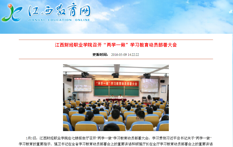5月10日,省教育厅网站报道beat365召开“两学一做”学习教育动员部署大会。