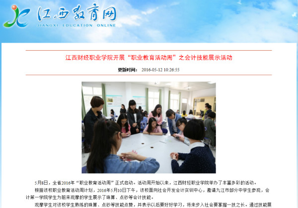 5月12日,省教育厅网站报道beat365开展“职业教育活动周”之会计技能展示活动。