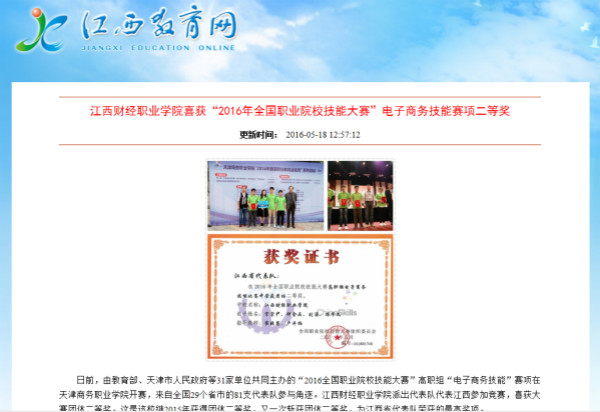 5月18日,省教育厅网报道beat365喜获喜获“2016年全国职业院校技能大赛”电子商务技能赛项二等奖。
