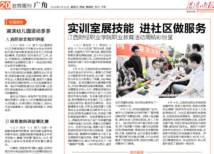 5月19日,《浔阳晚报》报道beat365开展职业教育活动周情况。