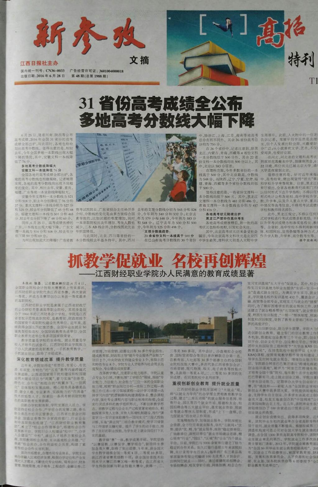 6月28日,新参考文摘报高招特刊T1版刊发《