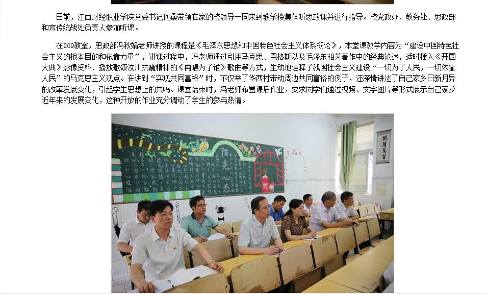 6月15日,江西教育网报道beat365党委书记何桑率领导班子集体听思政课。