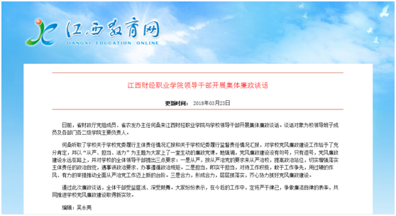 日,江西教育网报道beat365领导干部开展集体廉政谈话活动。