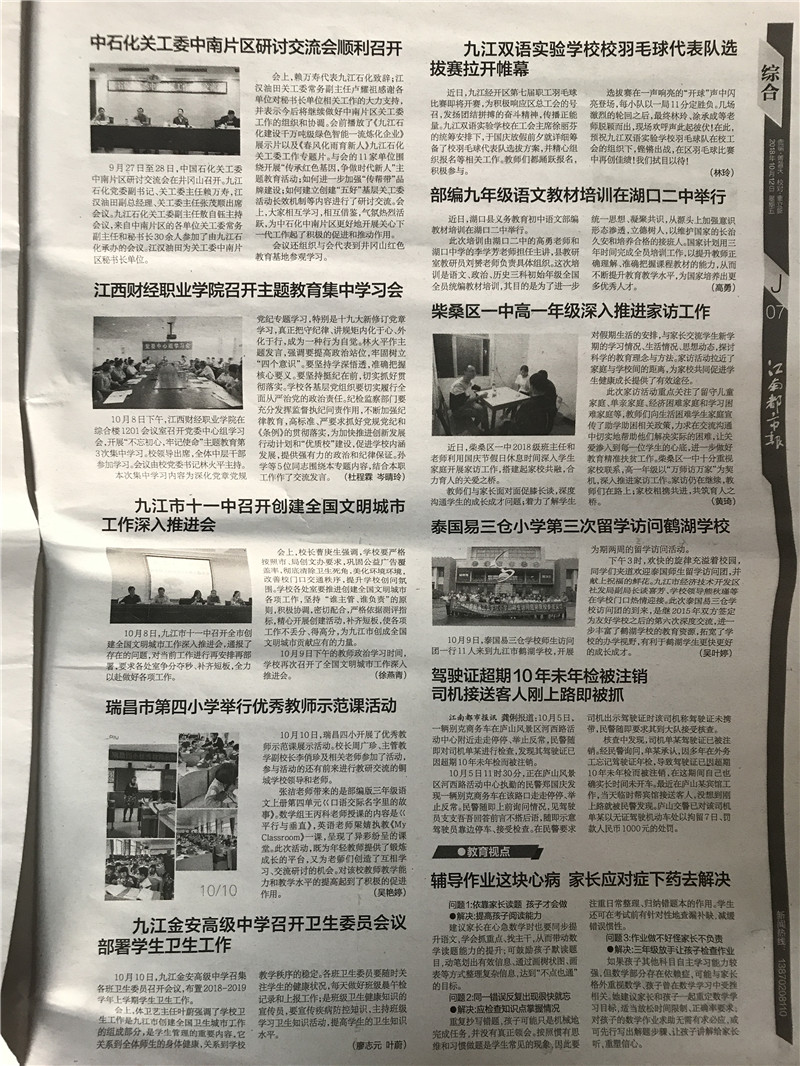 10月12日,《江南都市报》报道beat365召开主题教育集中学习会一事。