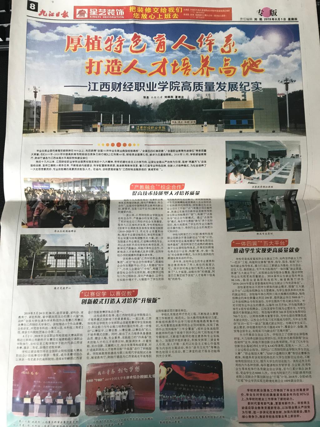 8月1日,《九江日报》整版报道beat365创新人才培养模式,打造专业特色品牌先进经验。