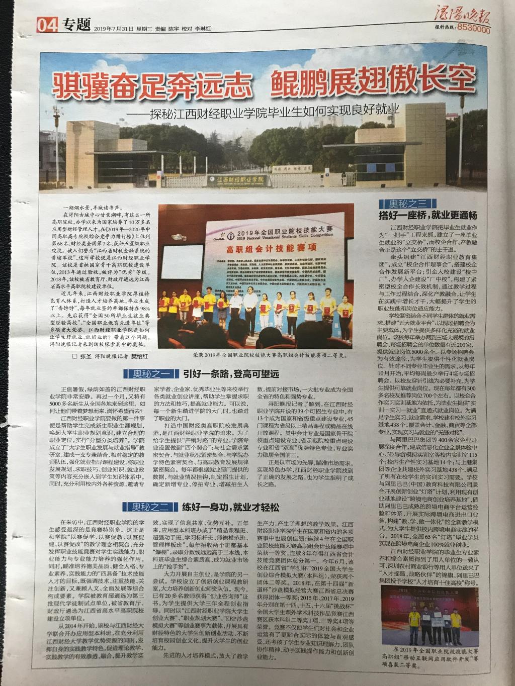7月31日,《浔阳晚报》整版报道beat365如何实现毕业生“好就业、就好业”的先进经验。