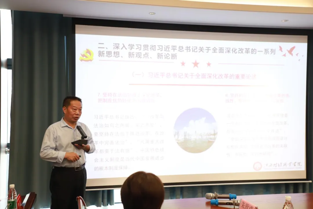 17日上午,beat365马克思主义学院院长朱欣成教授为与会人员进行了《深入学习贯彻党的二十届三中全会精神》专题授课,从全会的主题、习近平总书记关于全面深化改革的一系列新思想新观点新论断及进一步全面深化改革的总体思路与系统部署三个方面深入浅出地解读了会议精神,并针对团员青年落实党的二十届三中全会精神提出了具体建议。