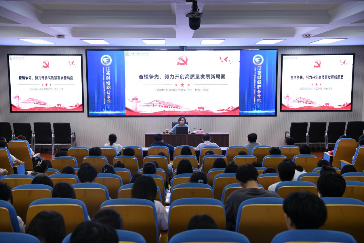 彭慧围绕“奋楫争先,努力开创高质量发展新局面”这一主题,从“为什么高质量发展是首要任务”“什么是高质量发展”“如何推动高质量发展”等三个部分展开,结合党的二十大决策部署和学习贯彻习近平新时代中国特色社会主义思想主题教育,当前国内外形势,地方经济社会发展和学校“十四五”规划等情况,用生动的语言、典型的案例从历史、实践、理论等视角系统阐述高质量发展。