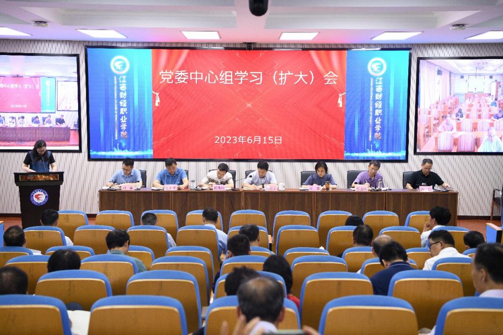 6月15日,学校在综合楼七楼报告厅召开党委中心组学习(扩大)会,传达学习习近平总书记重要讲话精神并开展学习研讨。党委书记刘彪文主持会议,校领导班子成员、各部门负责人参加会议,南昌校区视频参会。