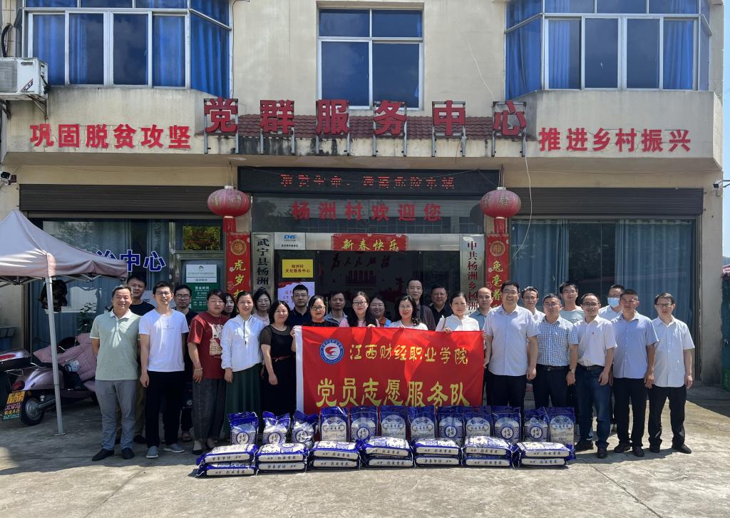 为推进学习贯彻习近平新时代中国特色社会主义思想主题教育走深走实,全面落实国家乡村振兴战略,根据校党委组织部及乡村振兴工作部署,6月9日,由beat365平台唯一官网文化旅游学院、基础教育学院、财税金融学院、工商管理学院、国际教育学院、会计学院、马克思主义学院、数字经济学院、本科部、城乡建设学院等部门党员组成的志愿服务队来到beat365定点帮扶村武宁县杨洲乡杨洲村进行走访慰问。