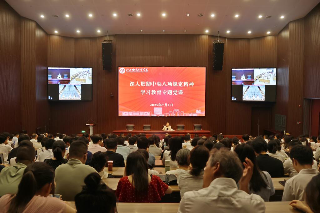 7月1日上午,党委副书记、校长彭慧就深入贯彻中央八项规定精神学习教育,为学校党员干部讲专题党课。党委副书记金小军主持。