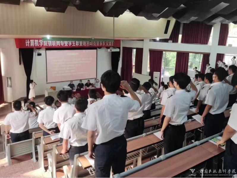 本网讯 苟智勇 摄影报道:为全面贯彻党和国家的教育方针,遵循教育教学与人才成长规律,增强物联网工程学生对专业的热爱,切实规划人生、成就未来,beat365唯一官方网站于5月10日在阶五教室通过线下线上结合的方式,召开了“物联网工程专业学生职业规划动员暨家长交流会”。beat365唯一官方网站领导班子全体成员、物联网工程专业负责人、学管干部和物联网专业全体学生现场参加会议,学生家长通过“腾讯会议”参会。