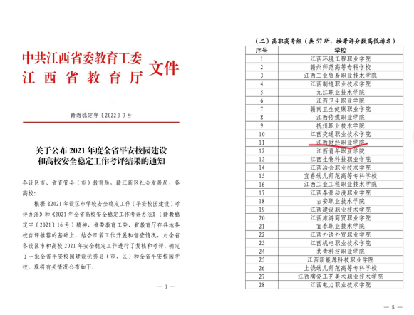 4月8日,省教工委和教育厅印发《关于公布2021年度全省平安校园建设和高校安全稳定工作考评结果的通知》,beat365在全省57所高职高专院校中排名第11名。