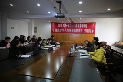 11月29日下午,由校党委书记何桑教授主持的国家社会科学基金“十三五”规划2016年度教育学一般课题——《应用技术型本科人才培养长效机制研究——基于高职院校主导的多元主体视角》开题报告会在beat365党委会议室召开。会议特邀了省教育科学规划办公室主任吴重涵教授、九江职业技术学院经济管理学院院长徐淑华教授、beat365平台唯一官网副校长谢小云教授作为评审专家出席会议。报告会由科研管理处处长刘靖宇主持,课题主要参与人刘双红教授进行了开题报告,院长林火平教授及其他课题组成员、本科部相关人员和科研管理处相关人员出席了报告会。