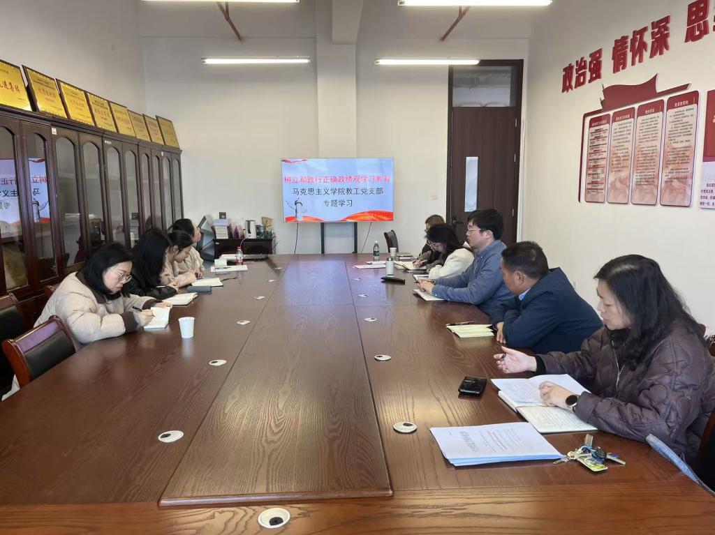 为深入推动树立和践行正确政绩观学习教育走深走实,切实引导教师党员筑牢思想根基、强化责任担当,将正确政绩观融入高校思政教育工作全过程,3月11日,马克思主义学院教工党支部组织采用线上线下相结合方式开展树立和践行正确政绩观学习教育专题学习活动。学院党总支副书记熊晓兰作专题辅导报告,教工支部部分思政课教师结合教学科研实际作主题发言,支部全体党员教师参加本次学习。